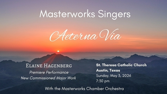 The Masterworks Singers and Orchestra, conducted by Dr. H. Morris Stevens, Jr. will perform the premiere of the commissioned work Aeterna Via by award-winning composer Elaine Hagenberg at 7:30 p.m. on Thursday, May 7, 2026, at St. Catherine of Siena Catholic Church.