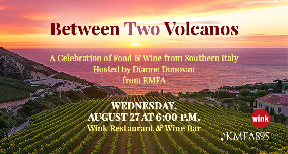From the slopes of Mount Vesuvius to the heights of Mount Etna, Southern Italy and Sicily are home to bold flavors, sun-kissed produce, and extraordinary wines. Join KMFA’s own Dianne Donovan for an unforgettable evening as Wink Restaurant & Wine Bar presents a five-course feast with perfectly paired wines from the region between two legendary volcanos.