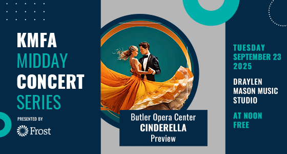 KMFA Classical 89.5 is delighted to welcome back the Butler Opera Center for a special noontime preview of Jules Massenet’s Cinderella. This free Midday Concert Series performance, presented by Frost Bank, offers audiences a chance to enjoy highlights from the Butler Opera Center’s enchanting fall production before it opens at UT’s McCullough Theater.