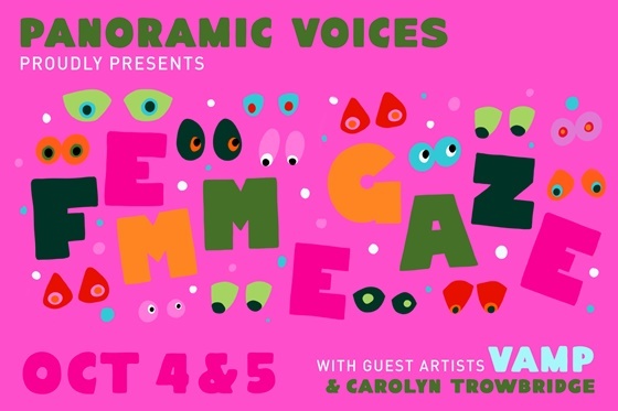Panoramic Voices kicks off its season with FEMME GAZE, a bold and uplifting concert exploring storytelling from the feminine perspective. Special guest artists include VAMP, a powerhouse vocal quintet known for their eclectic songbook and fearless style, joined by acclaimed musician Carolyn Trowbridge and a dynamic lineup of instrumentalists.