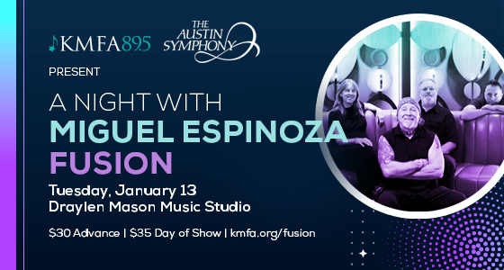 Experience Miguel Espinoza Fusion like never before—up close, unfiltered, and in the intimate acoustics of KMFA’s Draylen Mason Music Studio. Just days before joining the Austin Symphony Orchestra for a full symphonic collaboration, the ensemble brings a completely different program to KMFA for a one-night-only studio concert.